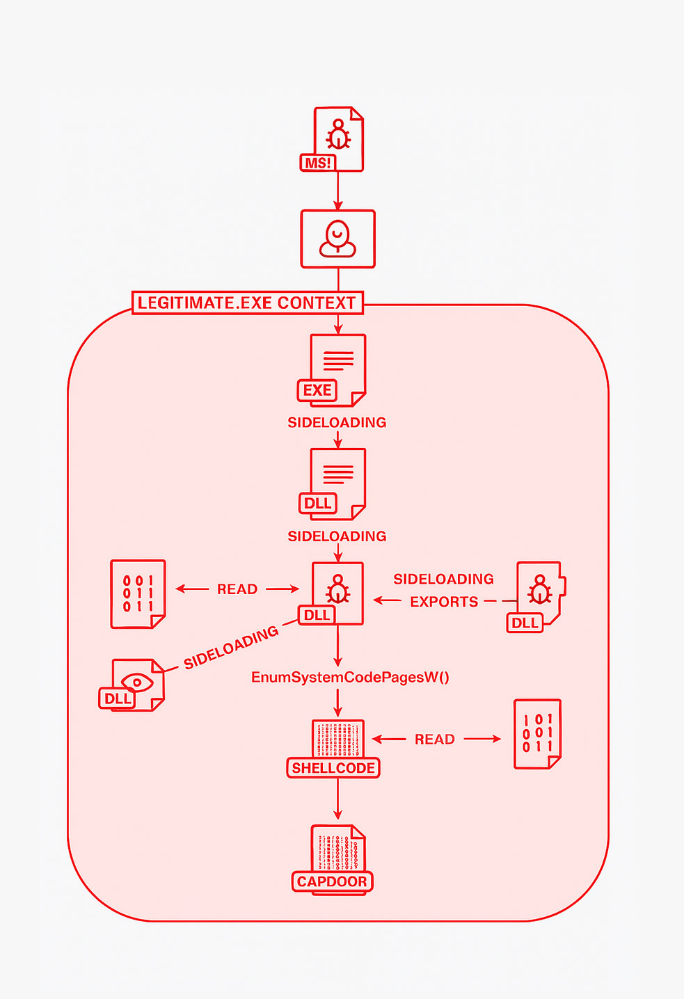 PhantomCore is not the only group conducting campaigns against Russian organizations. In recent months, industries such as manufacturing and aviation have also been targeted by phishing campaigns linked to a financially motivated actor known as CapFIX. This group distributes a backdoor named CapDoor, capable of executing PowerShell commands, loading DLLs and executables, installing MSI packages, and capturing screenshots. CapDoor was initially identified in 2025 and delivered using the ClickFix social engineering technique.