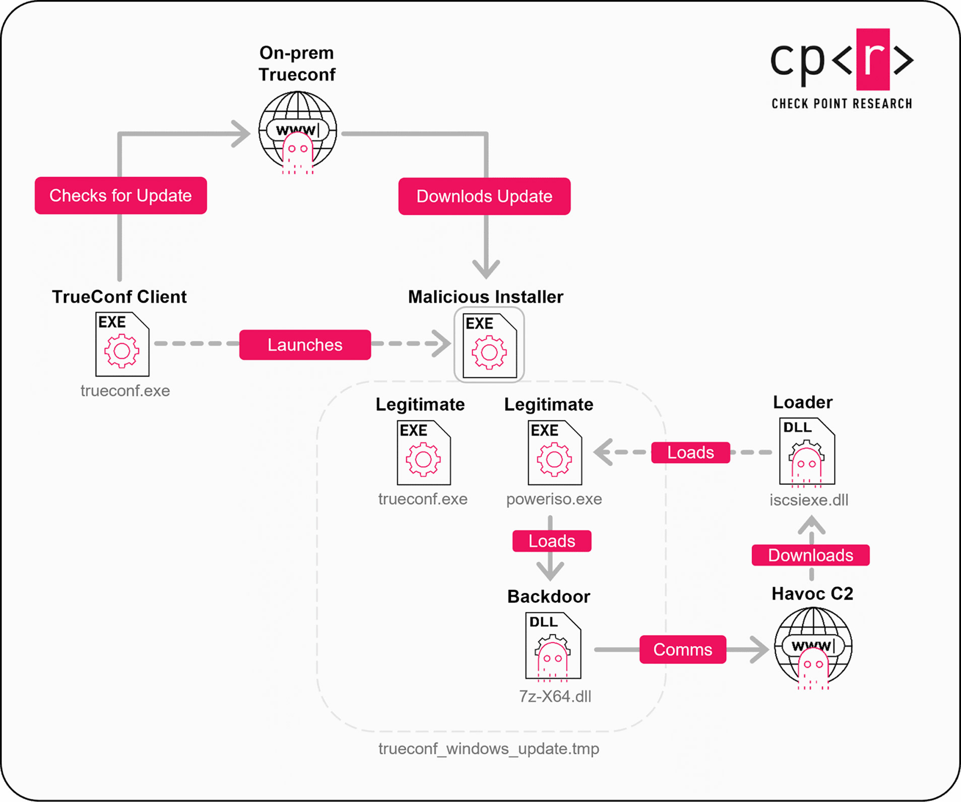 As Check Point noted, exploitation of CVE‑2026‑3502 eliminated the need for attackers to compromise endpoints individually. Instead, adversaries abused the trusted update channel between a centralized TrueConf server and its clients, effectively transforming the legitimate update process into a malware distribution mechanism spanning multiple connected government networks.